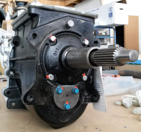 An dem Deckel unter der Getriebeeingangswelle erkennt man die verstärkte Variante, bei der Günter die Lagerung der Vorgelegewelle besser lagert: